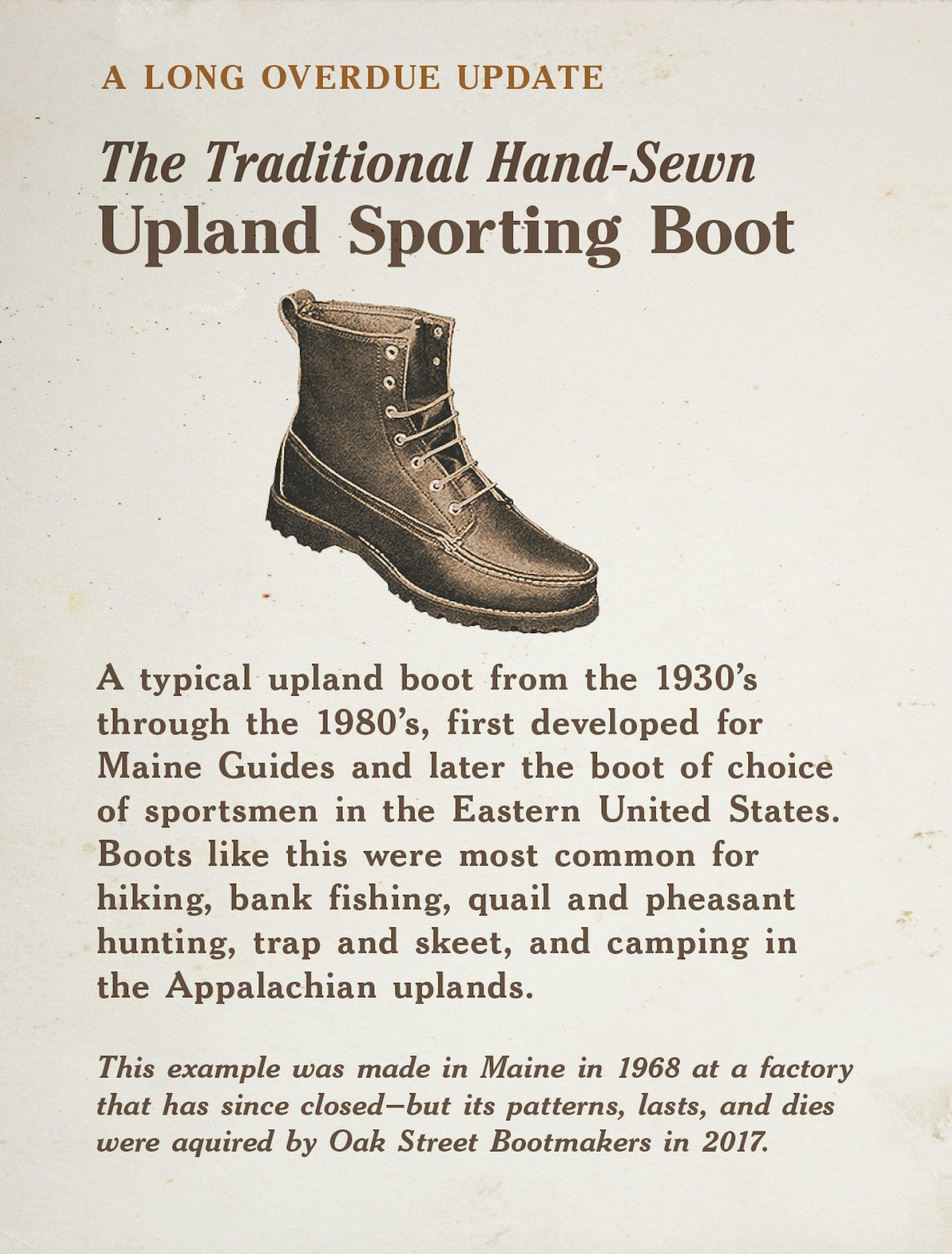 Genuine Handsewn Construction with Mud Guard and Collar. Horween® Chromexcel® Leather. Snag-Resistant Low-Profile Pull with Box X-Stitched Backstay. Gusset Tongue in Glove-Soft Brown Seidel® Leather. Exclusive Brown Vibram® 4014 Christy® Sole. Unlined Form-Fitting Inner. Waxed Handsewn Thread. Tone-On-Tone Stitching. Antique Brass Eyelets. Cougar #50 Rawhide Laces.